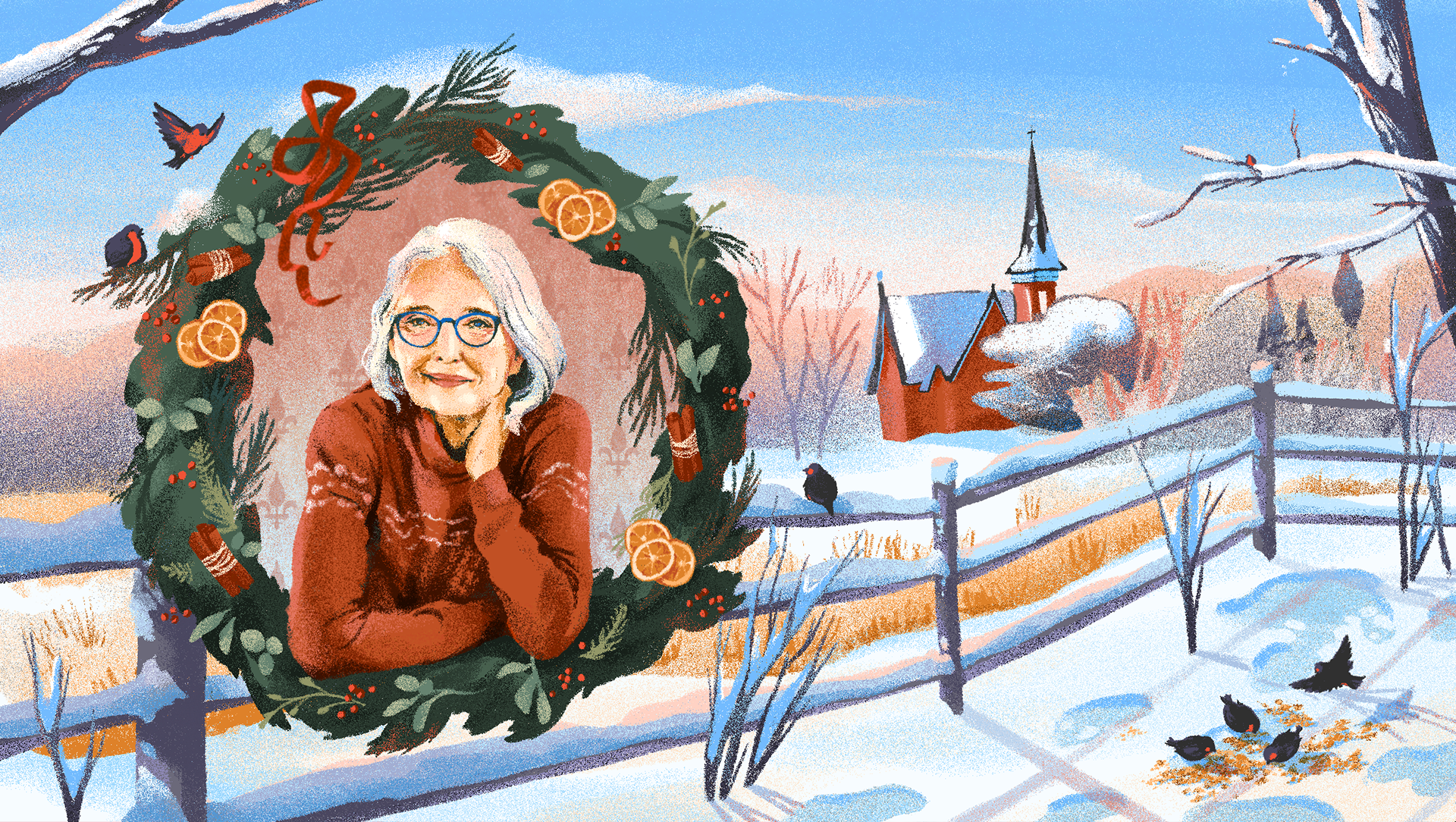 Article introducing Louise Penny - a Canadian author who found a home in Knowlton, Québec, where she was welcomed with warm conviviality. She found inspiration for many of her bestsellers in this small town.